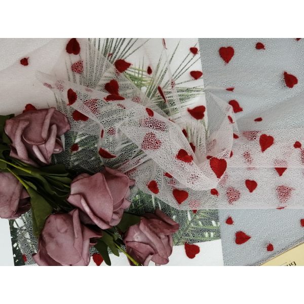 Red Heart Shape Embroidery Embroidered Lace Fabric for Evening