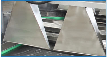 This machine is suitable for removing water after sterilization of high and low temperature meat products, vegetable products and other soft packaging products after sterilization. It is also suitable for removing surface water after cleaning vegetables. By turning over and draining water several times, and the high pressure and strong cold air blow on the upper part, the soft packaging can completely achieve the effect of water droplets on the surface (the water stored in the wrinkles on the bag surface can also be dried). This equipment is connected to the sterilizer and the speed is synchronized, the equipment is environmentally friendly and energy saving.