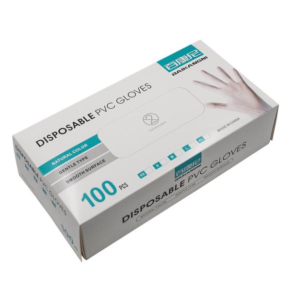 Disposable PVC gloves, powder free, 100 pieces in durable box for civil use