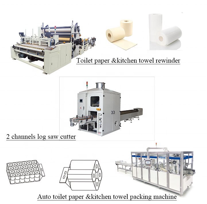 This equipment is to perforate and cut the raw paper into various sizes according to the requested. The finished product is neat, in good order and with equality tension. It has the feature of compact structure, easy and stable operation, less electricity consumption and covers a small area. The highest production speed is 200-250 m/min. This equipment is adjustable to meet the requested finished product of toilet paper and kitchen towel. This model is the ideal equipment for paper making factory and paper processing factory,we have different type machines to meet different requirements,not only for big company,but also for small company