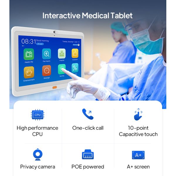 The One-Click Call feature allows users to instantly reach support staff, medical personnel, or technical assistance with a single touch. This convenient and intuitive function is ideal for hospital rooms, meeting spaces, and customer service kiosks, ensuring rapid response times in critical situations. Integrated into the tablet interface, One-Click Call enhances user experience by reducing complexity and improving communication efficiency — whether it's for patient care, room service, or facility requests.