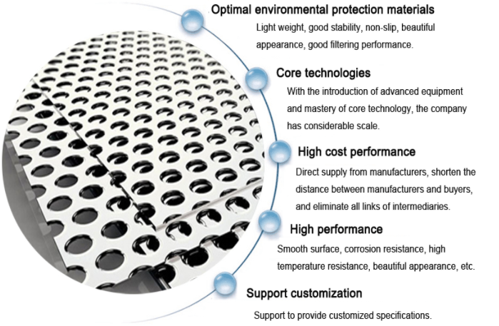 Hole styles: circular hole, hexagonal hole, fish scale hole, etc.Production can be made in different material, style or hole diameter.