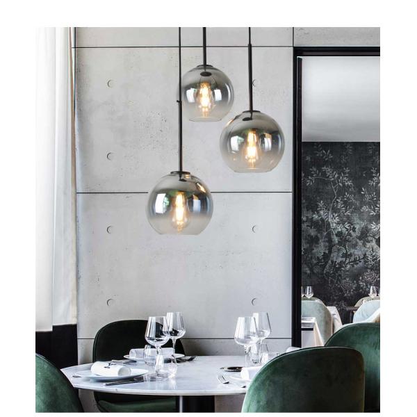 This glass pendant light can be used in bedroom,dinning room or bar.The light source is E27,color we can provide silver,gold and clear,you can use seperately or three heads with a long base.