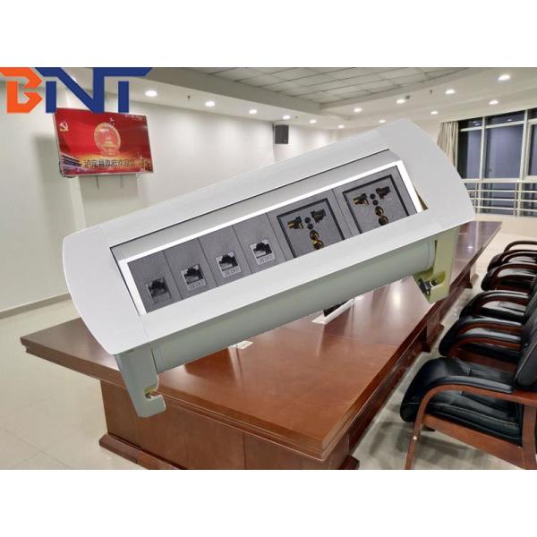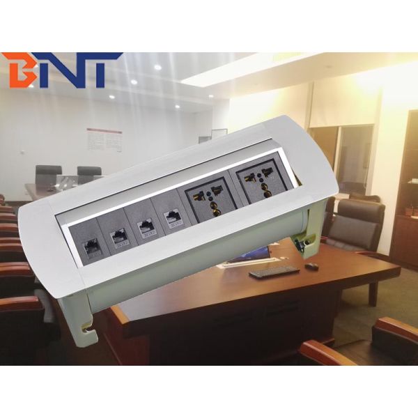 MK Series rotatable tabletop socket is mainly used in advanced office, hotel and home, training room, lecture room. Tabletop socket could be used with other installation surrounding together. When power with the desktop power socket, the indicator light is power on, product come to working station. Press the up/ down switch, all the multi-functional sockets could be rotate 180 degree to whatever position as needed. All configuration on desktop socket could be hidden under table if unused and would be rotating into the tabletop by automatically.