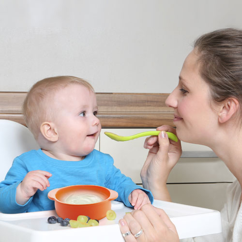 Rounded, soft spoon is gentle on baby's gums and ergonomically