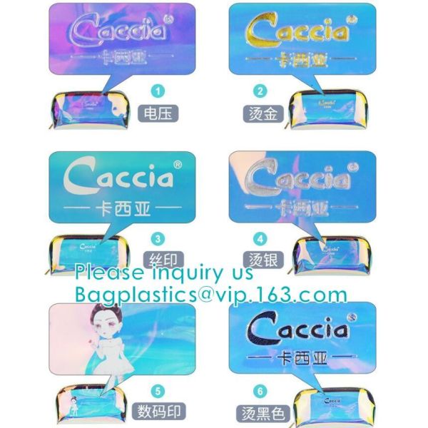 Custom Laser holographic hologram sewing pvc bag pvc cosmetic makeup bag,Women's Metallic Silver Iridescent Holographic