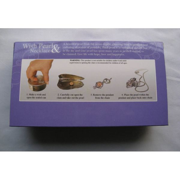 After opening the "gift box",you will find a mussel containing the "Pearl of Wish ".Once you see your "Pearl of Wish " you will discover how elegant and lustrous it is.Included is a copper chain with nice cage pendant.Each freshwater pearl is unique and once opened can be found in 5 different colors, each symbolizing a different meaning: