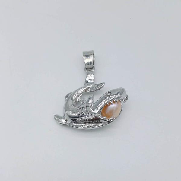 Womens Necklace Luminous Pendant Necklace Luminous Pearl Shark Hollow-out Pendant Necklace.
