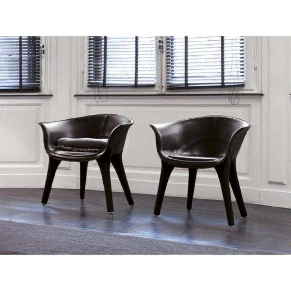 A chair characterised by an elegant and refined design. This is a piece that enhances the space in which it is placed thanks to its rounded yet well-defined shapes. Doralee comes with leather or with stiff leather fixed cover and optional contrasting stitching. A wonderful transitional piece from dining to lounge room.
