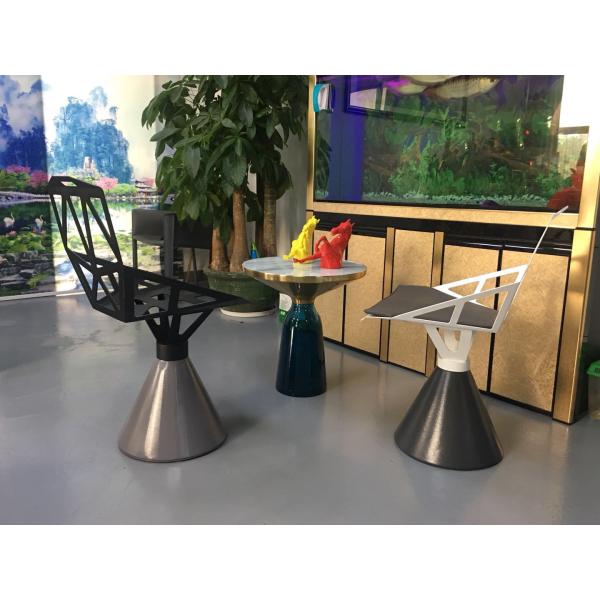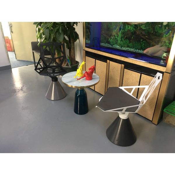 Chair One is by no means a mere avant-garde piece of furniture. The chair is an interaction of material, design and industrial production. It is rust-proof and fire-retardant and therefore predestined for fire-sensitive zones and for outdoor use. Grcic used die cast aluminium for the first time on the entire seat surface additionally treating it with sputtered fluoridated titanium and painting it in polyester powder.