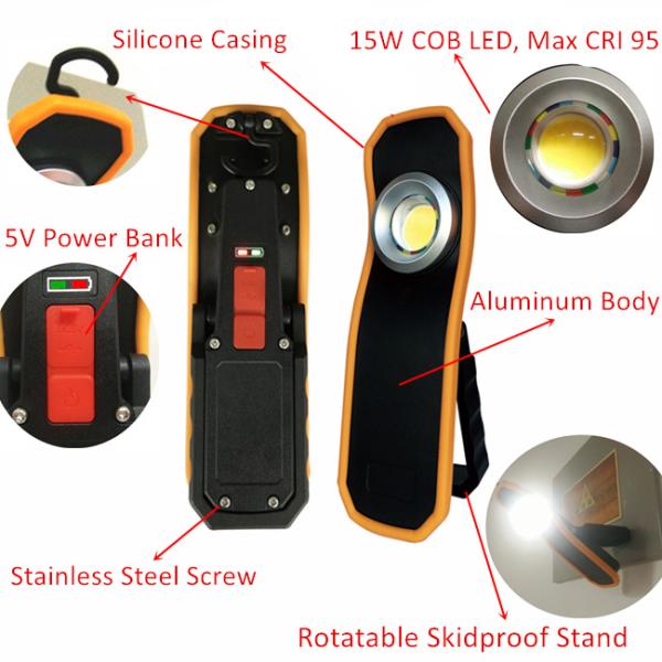 1500 Lumen 15W USB Rechargeable Led Inspection Light , Handheld Work Light