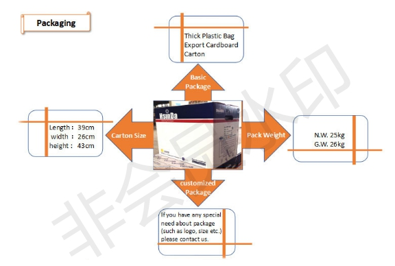 | Packaging | Size: 39*26*43 (unit:cm) Weight: N.W. 25kg G.W. 26kg |