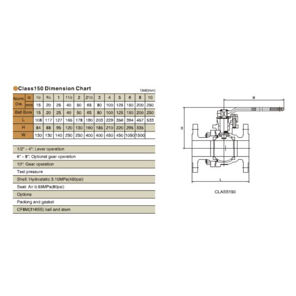 Two piece casting floating type ball valve of 1/2"-8" CL150-600 API 6D , 608 desgin