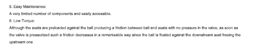 | Other remarks 4 | Full bore of valve convenient for pigging, of small flow resistance and high flow capacity |