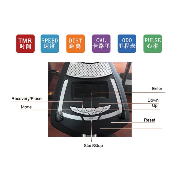 | Console display: | time,speed,distance,calories,heart rate.body fat,recovery handle pluse |