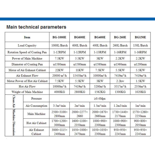 | Diameter of Coating Pan | φ1580mm | φ1580mm | φ1200mm | φ930mm | φ750mm | φ500mm | |