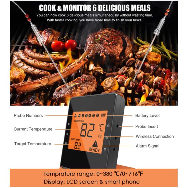 Free APP Bluetooth Bbq Thermometer For Grilling Oven Kitchen Smoker