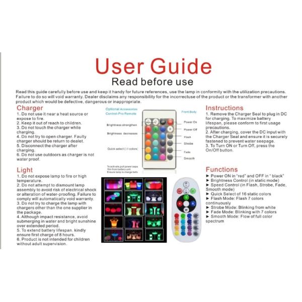 | Product combination | PE shell,LED lamp,remote,charger,user manual etc |