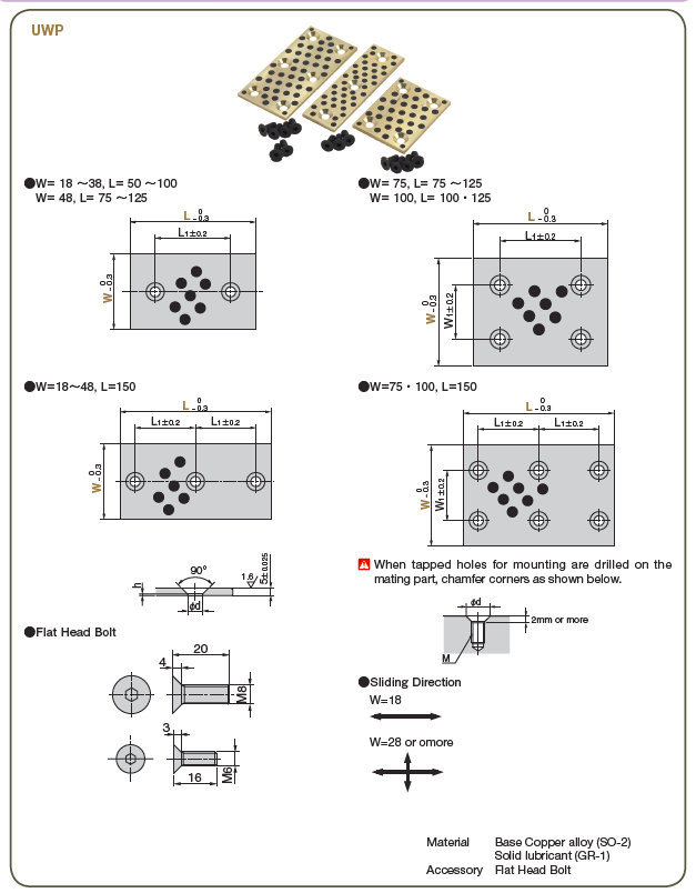 | Copper alloy | Graphite | 20 | SESW | Excellent in load resistance and wearExcellent sliding performance at high load and low speed.resistance. Good performance is shown in reciprocating and frequent starts and stops. |