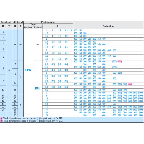 | 4mm head JIS head | Type | Part Number L | ||||||||||||||||||||||||||