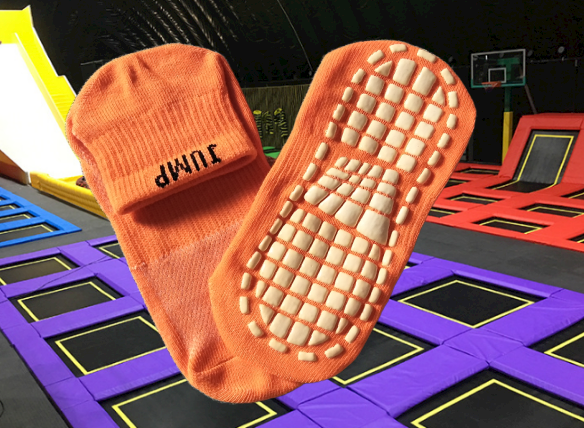 Sky Zone Anti Slip Trampoline Safety Socks , Orange Breathable Grip Socks With Rubber Soles