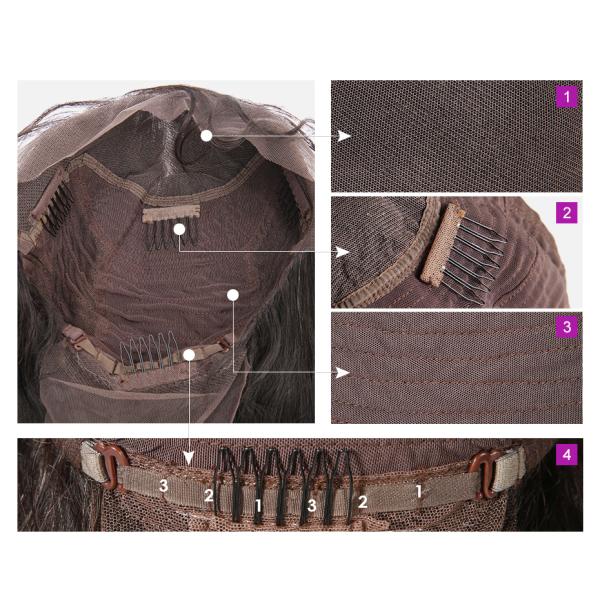 Wig cap constructions: | An average size cap with 4 combs,elastic net and the adjustable straps |