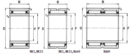 Needle roller bearings with cage without inner ring NA and NKI bearings are RNA and NK needle roller bearings without inner ring. This type of bearing has no inner ring and is suitable for supporting structures with restricted radial installation dimensions. The journal matching the bearing is used as the rolling surface directly. The shaft as the raceway surface must be hardened and ground, and only when it is processed to an appropriate size and shape accuracy, the entire set of needle bearings can have a higher life and running accuracy. At the same time, because there is no inner ring, the diameter of the shaft can be appropriately enlarged, which also increases rigidity.