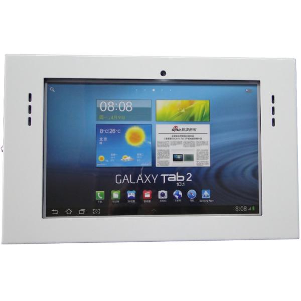 | Features and Benefits | -It is a key lockable,theft-resistant,stylist and tamper-proof shell. -Push-latch key mechanism makes it easy to lock and unlock the shell -The shell is constructed with signal-transparent, heavy-duty cold-rolled steel with powder-coated finish -All Wi-Fi, Bluetooth and 3G radio frequencies are unimpeded in the tablet or ipad -Cutouts for HOME button,camera,power button,volume control,speaker etc are fully customizable -Custom logo can be printed on the shell -VESA mount holes(75 x 75mm; 100 x 100mm) are made at the back of the shell,making it easy to be installed on a desktop base or a wall-mount bracket or a floor stand OR on other equipment -The rugged shell for iPad or tablet can be mounted in either landscape or portrait mode. -The tablet or iPad can be charged on dock without removal from the shell -Addition of card reader or printer etc is optional -Silver,white,black or custom colors |