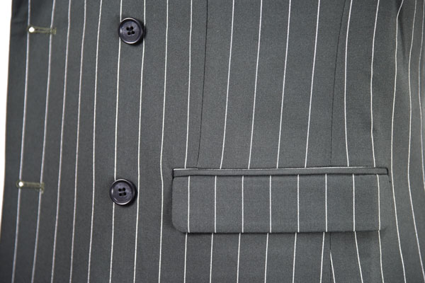 Mens Slim Fit Suit Blazer Grey Stripe Double Breasted Anti-Shrink Breathable