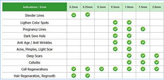 | 1.00mm/1.5mm | remove wrinkles and pigmentations on the skin |