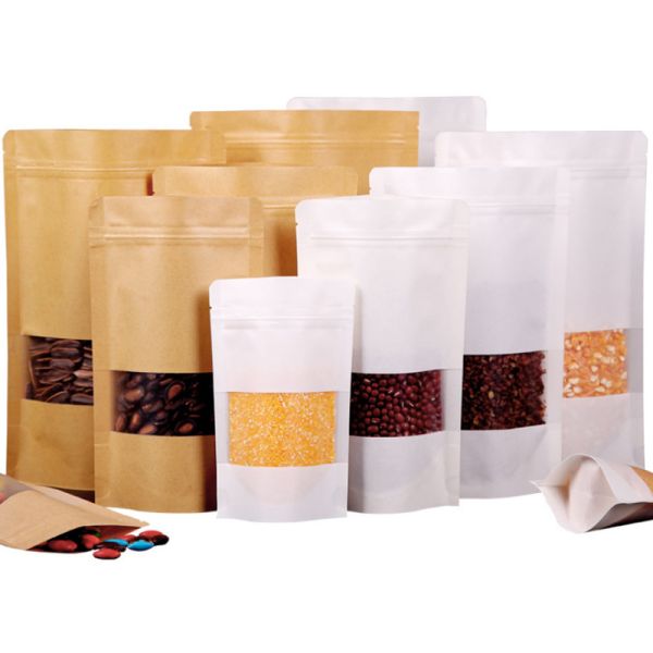 Standing Up Food Grade Brown Kraft Paper Zipper Poly Bags with Clear Window