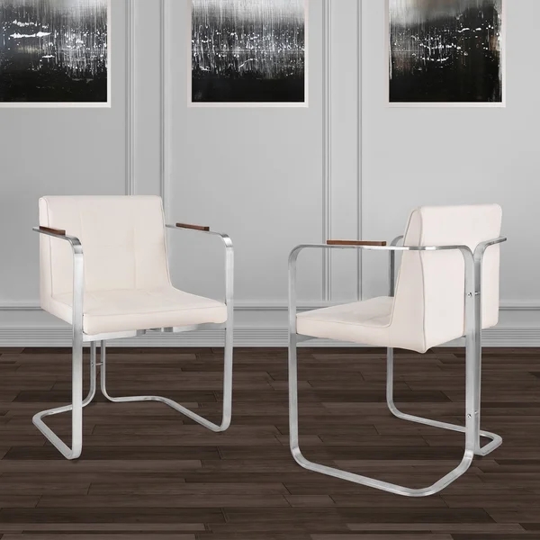 Contemporary silver stainless steel dining chair PU leather upholstery armrest chair