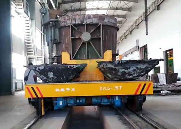 The Automatic Electric Driven Steel Industry Apply Transfer Carts For Molten Ladle Transport is an electric operated material transfer cart which is powered by battery and running on the rails. Its special is designed for high temperature ladle transport in the steel manufacturing factory.