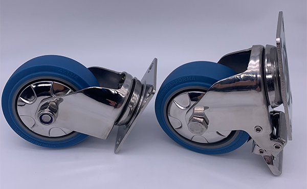 MATERIALS: Thermoplastic rubber (TPR) caster wheels combine the advantages of both a hard & soft tread material in a single wheel, making it one of our favorite caster wheels. Like a hard tread wheel, thermoplastic rubber rolls easily and is very durable. Like a soft tread wheel, it is quiet, protects floors, and has a cushioned ride. These caster wheels also hold up well when exposed to weather, are resistant to chemicals, water, & steam, and reject floor debris. We highly recommend these caster for applications requiring non-marking, floor protective, quiet, and smooth rolling wheels.