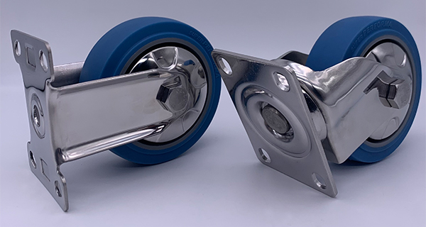 QUALITY CONSTRUCTION: With a wheel that’s made of blue, non-marking rubber and a heavy-duty metal frame plate, this caster is durable and resilient. The swiveling plate can also withstand exposure to chemicals and solvents.
