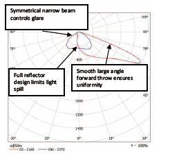 Specific photometrici ncreases the uniformityo f light, while reducing the light spill outside the court.