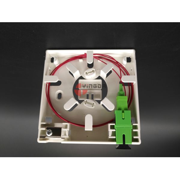 Outlet is fully load with 1pc SC/APC or 1pc SC/UPC adapter and 1pc SC pigtail 0.5meter 0.9mm for on-site fusion splice. It can be done at factory before delivery.