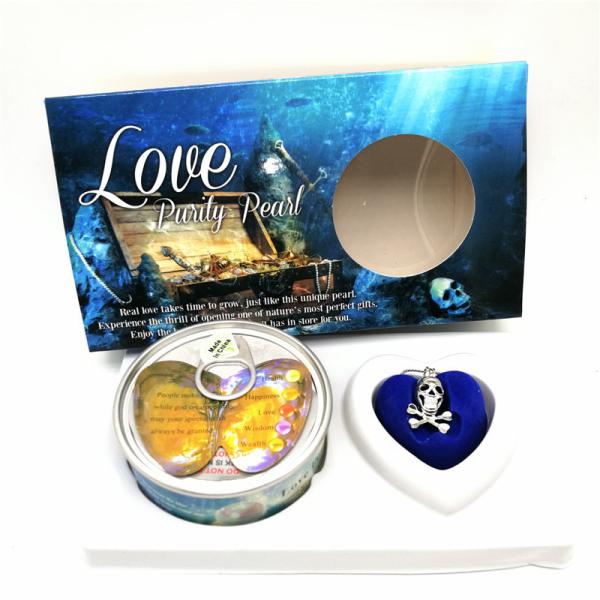 Love pearls with English version -- "Make a wish, realize the wish" this is the perfect Christmas gift for a girl of any age. The beautiful red box contains a real oyster with a genuine cultured pearl inside. After the oyster is opened and the pearl is removed there is a silver colored chain and cage pendant to put the pearl in and wear. The pearl could be white (for health), cream (for happiness), peach (for love), lavender (for wisdom), or gold (for wealth), you won't know until you make a wish and open the oyster.Only nature could create such a perfect gift----Love pearls.