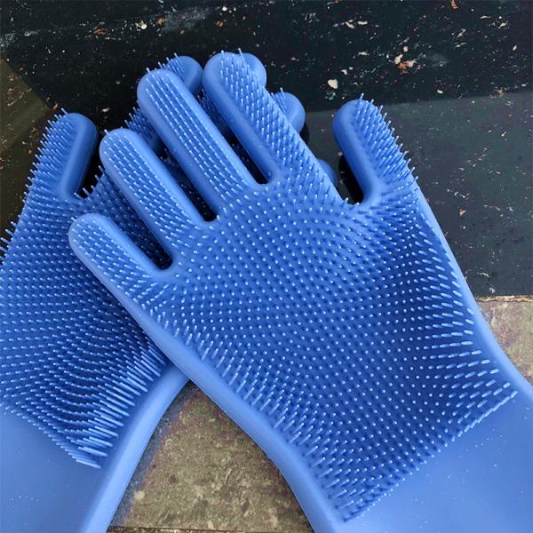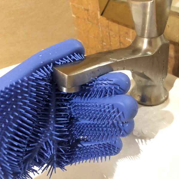 Durable Cleaning Brush Gloves: The silicone gloves resist tears and