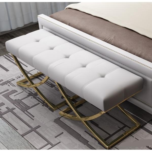 More relate photos:Velvet upholster Stainless Steel X leg Long Bench Ottoman Foot Stool