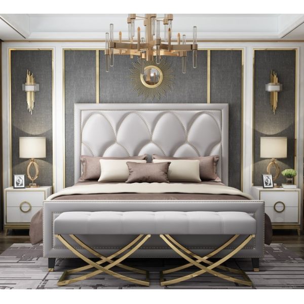 | 4) | Material: | Stainless steel frame with gold plated. Fabric with high density foam in cushion. |