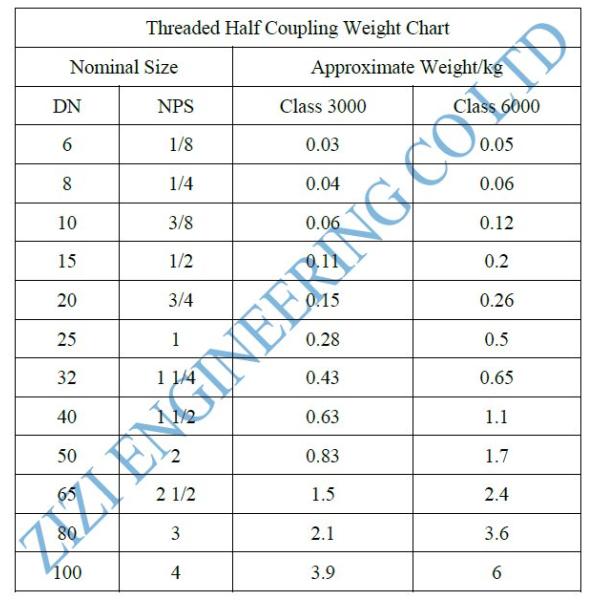 Half Coupling Weight Chart