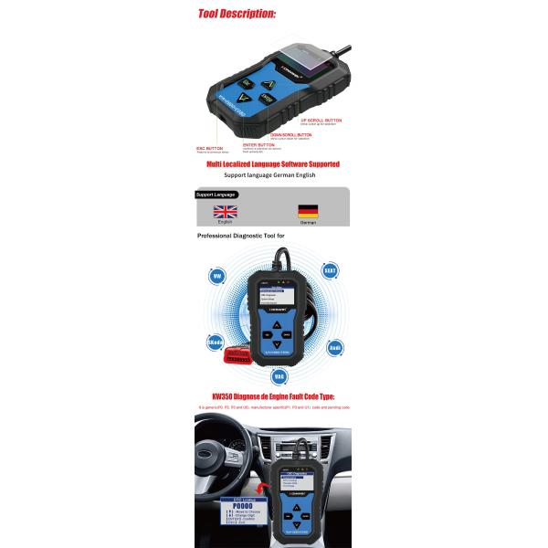 Konnwei KW350 is a super scanner for detecting the Volkswagen Series and OBD II