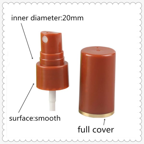 The cover of this product is the same color as the spray . The cover is different from the normal full cover . It has a circle of golden edge on the bottom of the cover , which makes the fine mist sprayer look more upscale and beautiful .