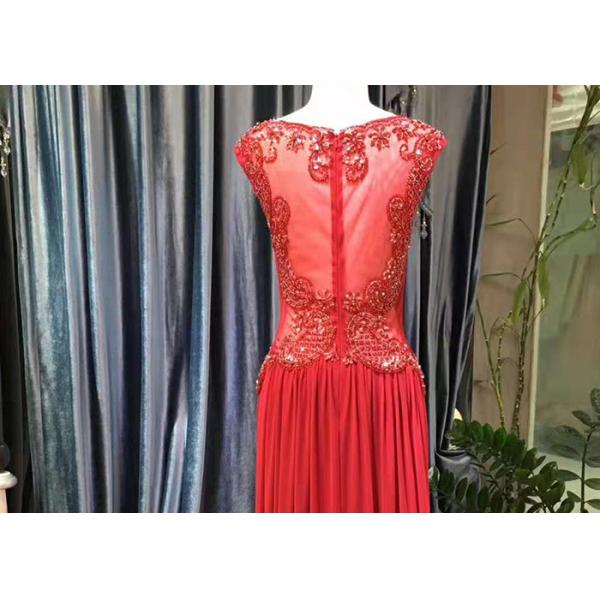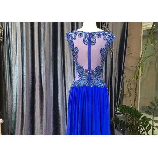 Red Blue A Line Dress Sleeveless Top Lace Heavy Beading See Through Style Chiffon Evening Dress