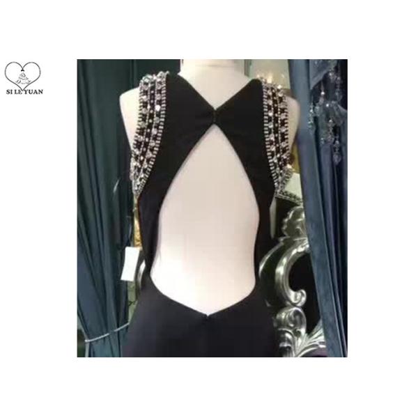 Black Beaded Mermaid Prom Dress Sleeveless Cross Shoulder Top Hollow Design With Fishtail