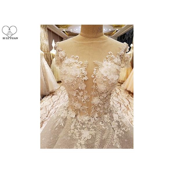 If buyer needs more fluffy effect of wedding dress, buyers should wear skirt brace first, then put down the wedding dress from head and tidy up the dress.