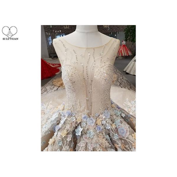 Long Tail Custom Champagne Prom Dresses Lace Beading And Colorful Flowers of The Whole Dress