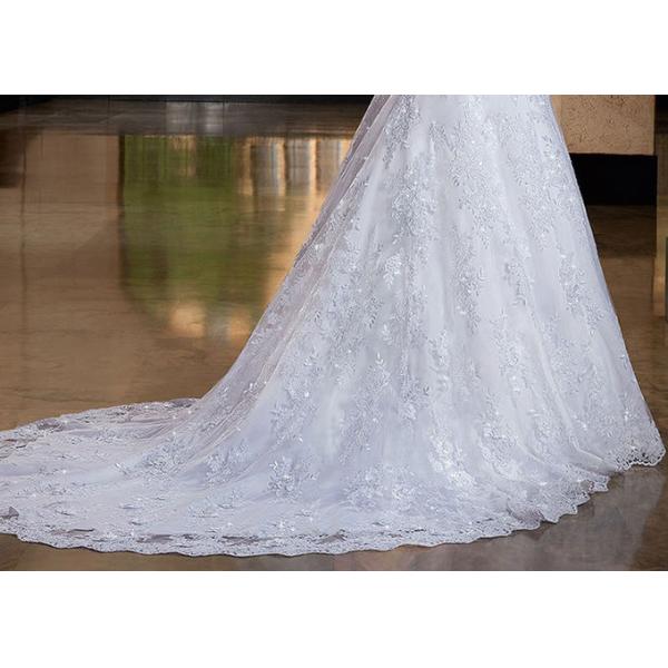 This pure white lace and beaded long train is a muslim A-line