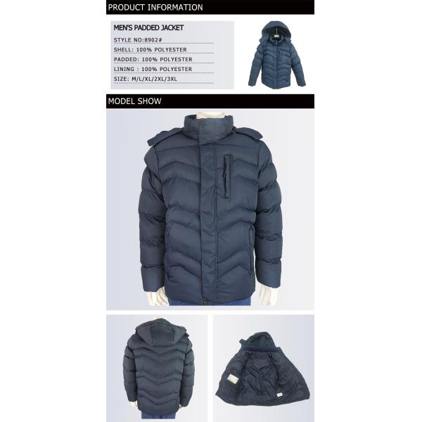 Buy Durable Windproof Mens Blue Padded Jacket With Detachable Hoody at wholesale prices
